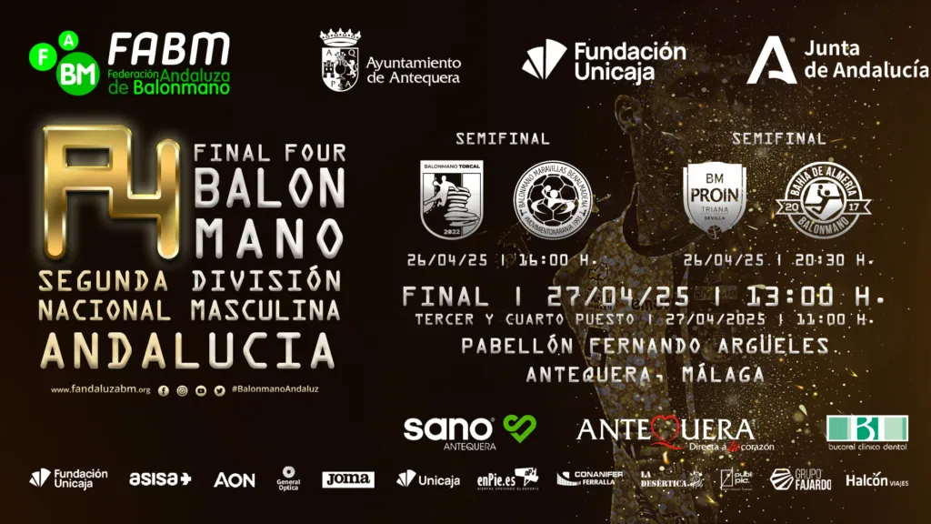 Cuatro equipos y un título en juego. La Segunda Nacional Masculina clausura este fin de semana su fase territorial con la celebración de la Final 4 que decidirá el campeón de la categoría en Andalucía. Sano Antequera BM Torcal, BM Maravillas Benalmádena, BM Proin Sevilla y CBM Bahía de Almería Carboneras librarán la batalla en un mítico pabellón balonmanero como es el Fernando Argüelles de Antequera, que a muy seguro congregará a cientos de aficionados en sus gradas el sábado 26 y domingo 27 de abril.