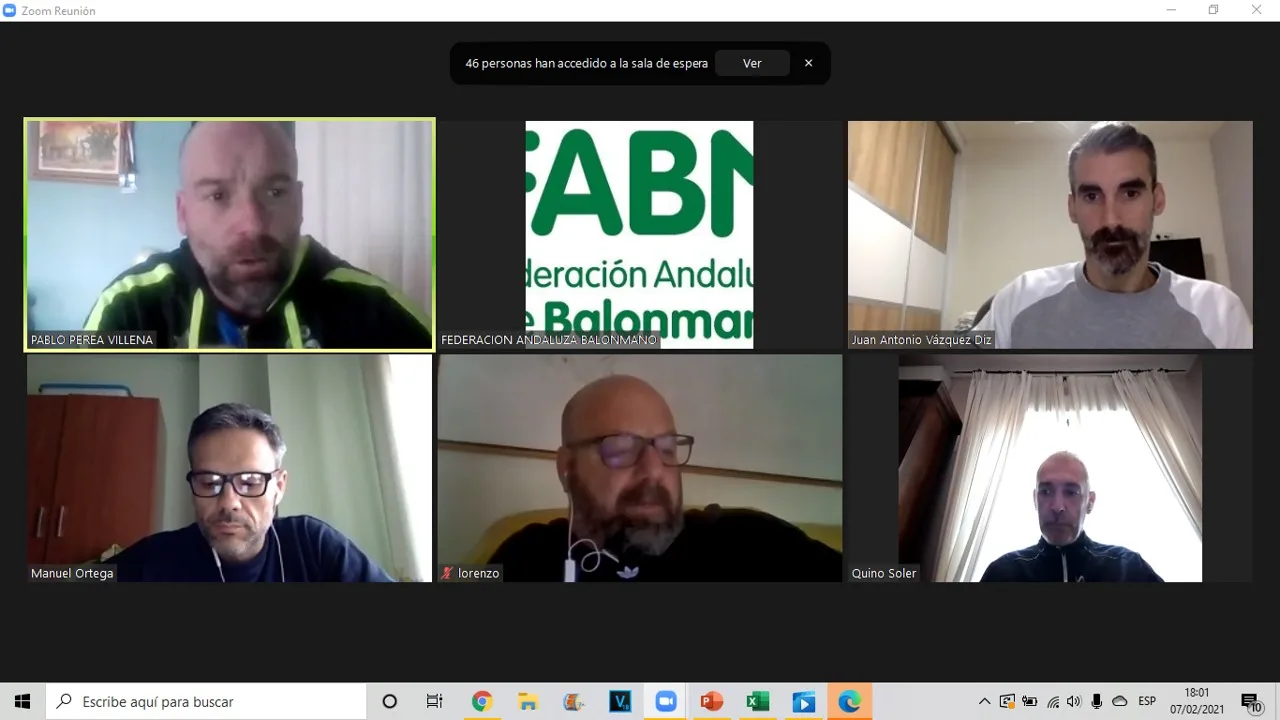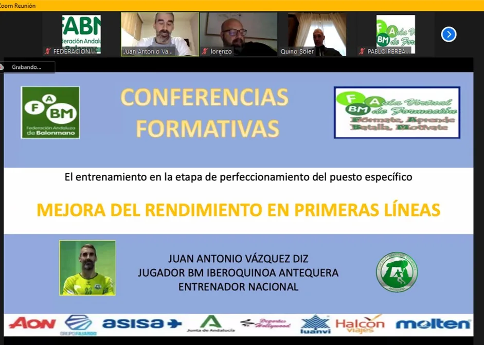 Las ponencias versaron, la primera, el 7 de febrero, sobre la mejora del rendimiento en primeras líneas, con la participación de Juan Antonio Vázquez “Chispi”, jugador del. BM. IBEROQUINOA ANTEQUERA, de División de Honor Plata, y Seleccionador Nacional Juvenil Masculino de Balonmano Playa, así como la participación en el debate posterior de Quino Soler, entrenador del equipo TROPS MALAGA, y Lorenzo Ruiz, entrenador del equipo BM. IBEROQUINOA ANTEQUERA, ambos equipos militantes en División de Honor Plata masculina.