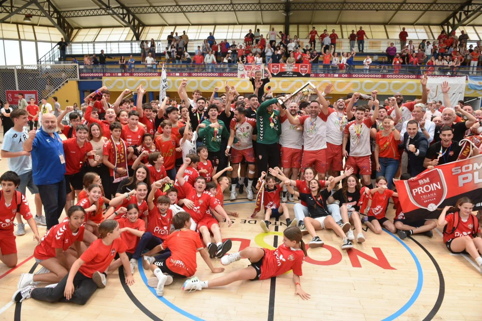 Sevilla está de celebración porque dos décadas después tendrá de nuevo un equipo en la División de Honor Plata Masculina. BM Proin Triana cumplió el objetivo del ascenso y lo hizo ante su afición en el pabellón El Paraguas, uno de los escenarios de la Fase Final de la Primera Nacional Masculina.