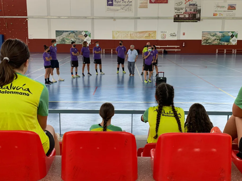Hoy es día de visitas de jugadores y jugadoras ilustres de nuestro balonmano andaluz. En el Campus que se desarrolla en Mollina, en el Centro Eurolatinoamericano de la Juventud, nos ha visitado Rafa Baena, jugador internacional, que ha jugado en varios equipos de categoría Asobal, así como en equipos de la Liga Alemana, esta temporada ha formado parte del Iberoquinoa Antequera, consiguiendo el ascenso a a categoría Asobal.