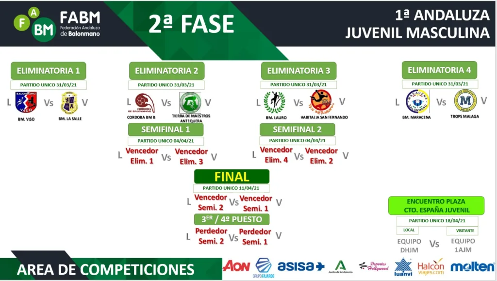 Finalizada la primera fase de la competición, en la mañana de hoy se ha celebrado en los locales de la Federación Andaluza de Balonmano, el sorteo de los emparejamientos de los equipos que disputarán la segunda fase, determinando el sorteo los siguientes cuartos de final: