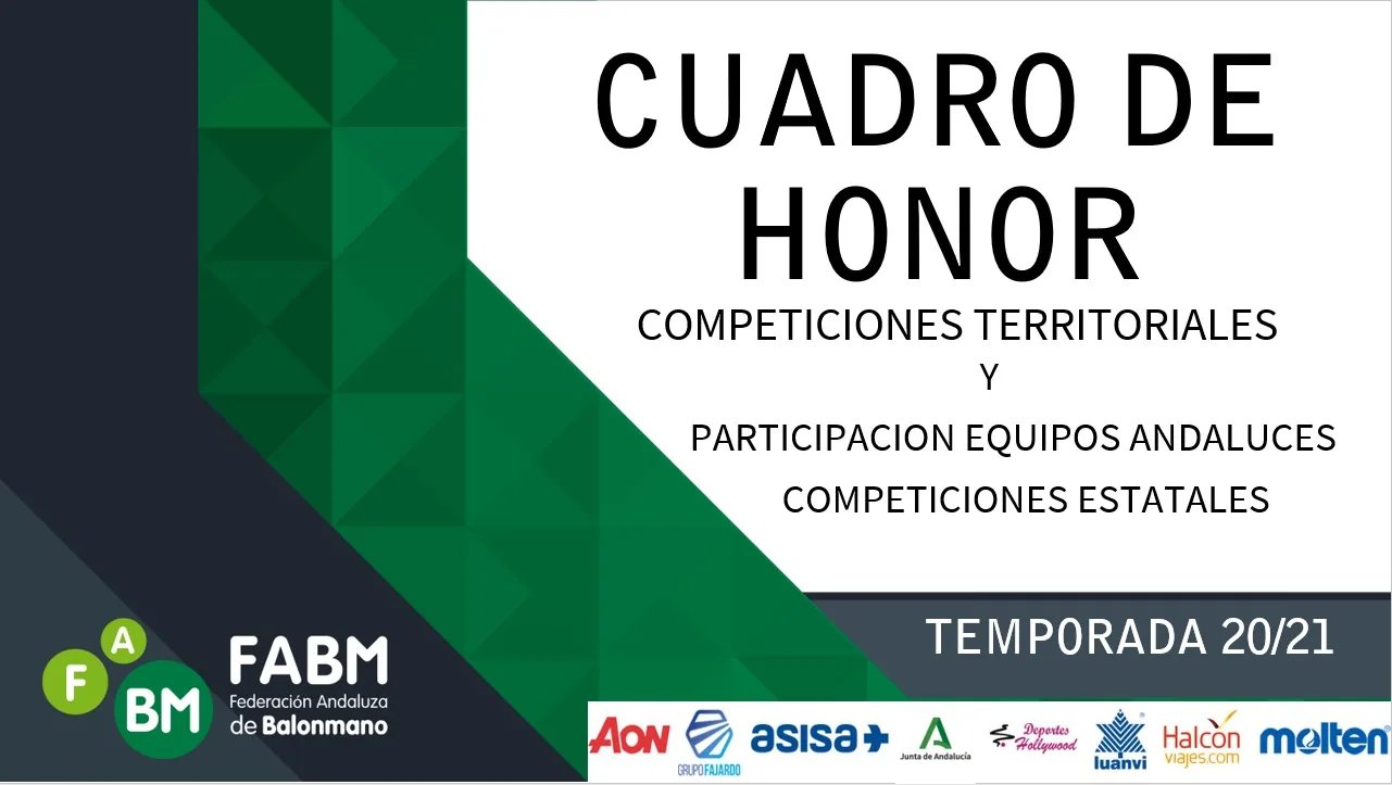 El Área de Competiciones de la Federación Andaluza de Balonmano ha elaborado un video-resumen de las distintas competiciones de ámbito territorial indicando los equipos que han ocupado puestos de honor en tales competiciones, desde la 2ª División Nacional Masculina, 1ª Nacional Femenina, División de Honor Juvenil Masculina y Femenina, 1ª Andaluza Senior Masculina, 1ª Andaluza Juvenil Masculina, Campeonatos de Andalucía de Deporte base «CADEBA» en sus tres categorías Cadete, Infantil, y Alevín masculino y femenino, así como la Copa Federación, Senior Femenina, y Juvenil masculina y Femenina, igualmente se hace mención a los equipos andaluces, que han participado en las distintas competiciones de ámbito estatal.