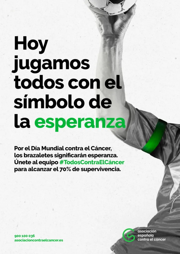 La Federación Andaluza de Balonmano, en colaboración con la Asociación Española Contra el Cáncer, pretende para dar visibilidad de la lucha contra el cáncer consistente. Esta iniciativa se basa en el lucimiento de un brazalete verde por parte de los jugadores y árbitros de la mayoría de las modalidades deportivas a nivel regional y nacional.