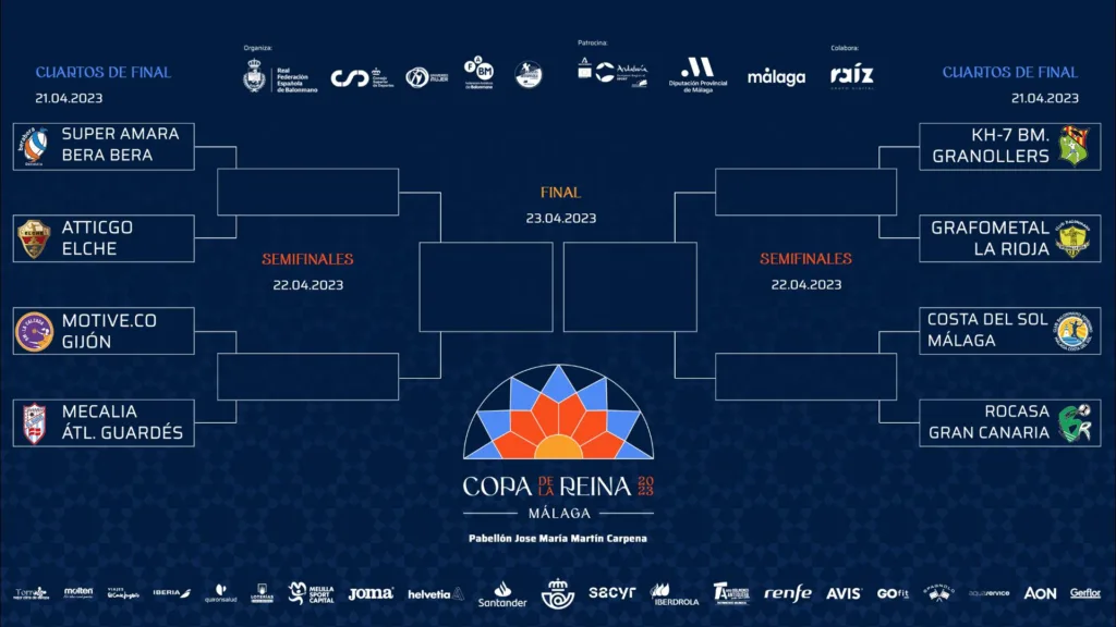 El sorteo de la fase final de la XLIV Copa de S. M. la Reina ha tenido lugar esta mañana en el Patio de Banderas del Ayuntamiento de Málaga: allí, los ocho equipos clasificados han conocido a sus respectivos rivales tanto para la ronda eliminatoria de cuartos de final, como en su camino hacia la gran final del 23 de abril en el imponente Palacio de los Deportes José María Martín Carpena de Málaga.