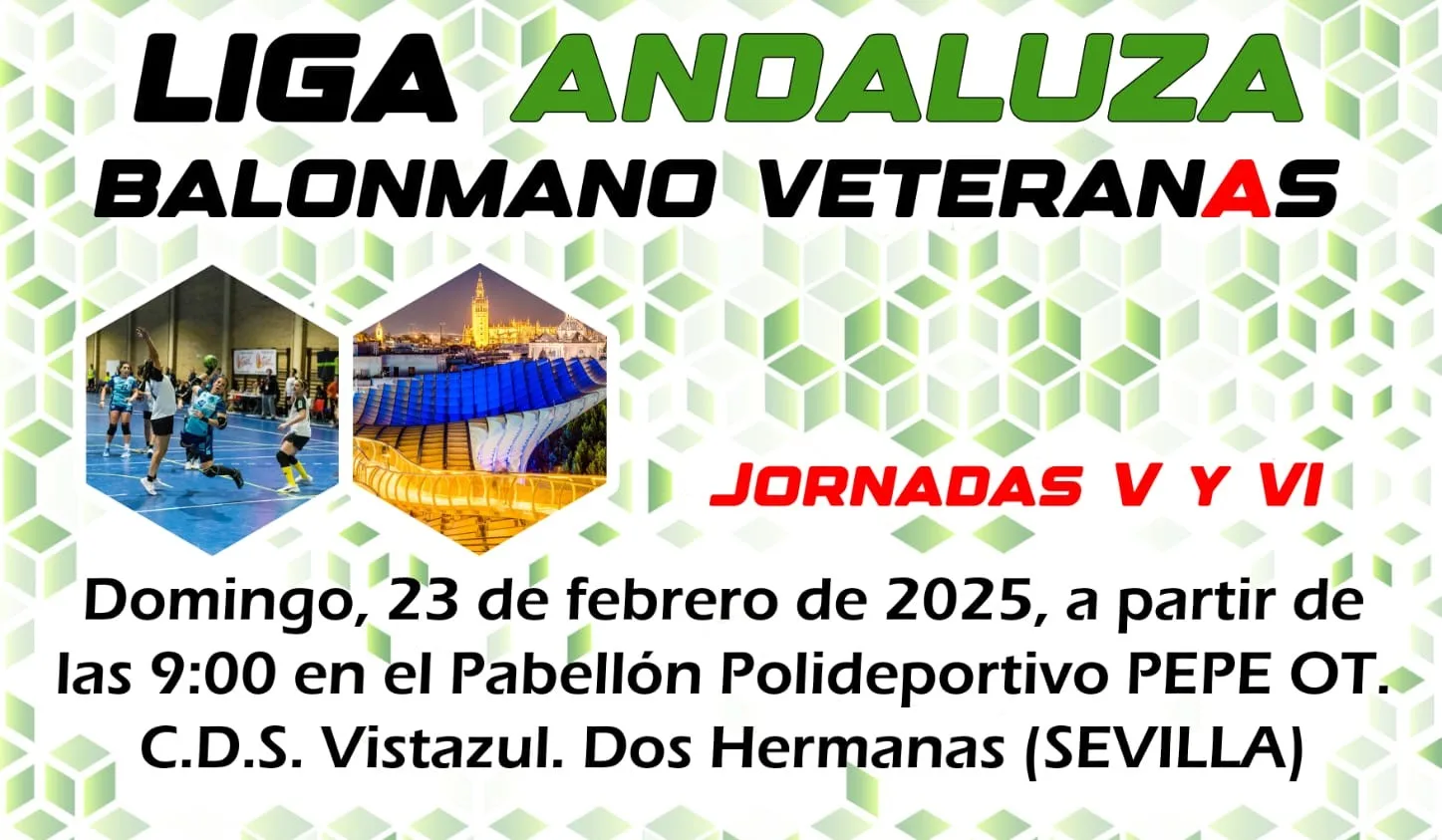 La Liga Andaluza de Veteranas atraviesa este fin de semana el tramo medio del curso. Tras la celebración de las cuatro primeras jornadas en Almuñécar y Nerva, respectivamente, Dos Hermanas toma el testigo para celebrar este domingo 20 de febrero las jornadas 5 y 6 de la competición. Será a partir de las 9:00 h. en el Pabellón Pepe Ot (C.D.S. Vistazul) de la localidad nazarena.
