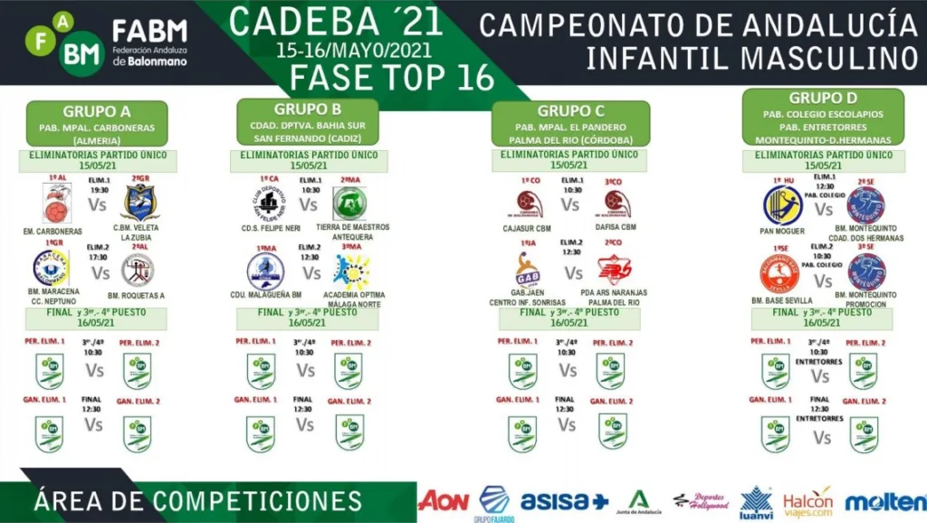 Este fin de semana comienza, después de la categoría cadete la semana pasada, la disputa de los CADEBA 2021 en categoría infantil. Se disputan el Top16 de la categoría femenina y masculina a partir de mañana. Ambas categorías se han dividido en cuatro grupos del que saldrán dos equipos que acceden al Top8, que se jugará dentro de dos fines de semana.