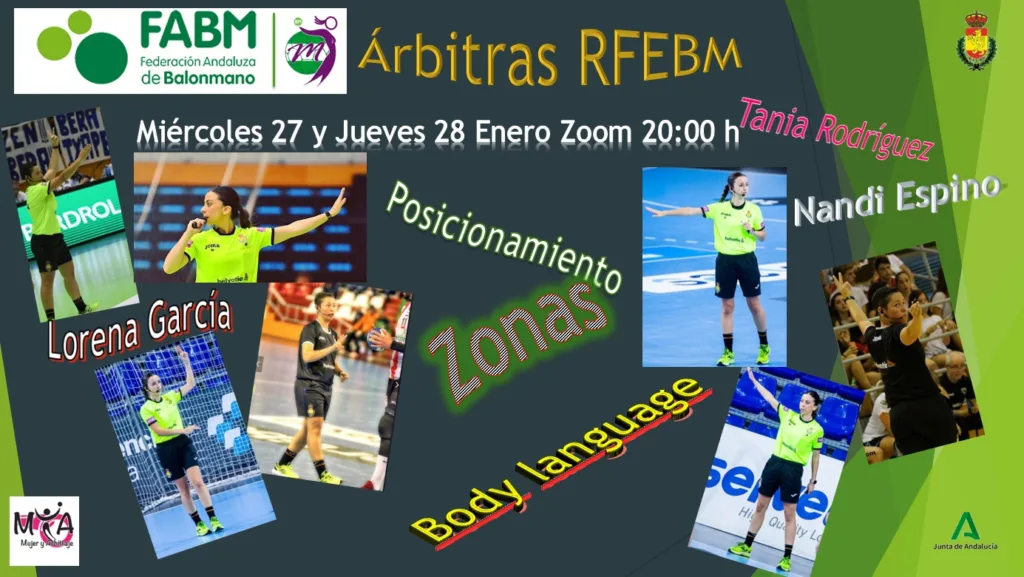 Esta semana comenzaremos con las ponencias de forma online a través de la plataforma zoom, que se desarrollarán este próximo miércoles 27 y jueves 28 de enero, ambas a las 20:00 horas, dirigidas al colectivo arbitral andaluz, cualquiera que sea su categoría. Esta actividad está organizada en colaboración con el Comité de Árbitros de la RFEBM que preside Pablo Permuy, así como el área de la Mujer y Arbitraje de la RFEBM, que representa Fuensanta Muñoz. Las ponentes serán las árbitras de categoría Nacional de la RFEBM, Nandi Espino (árbitra de Categoría Elite) y Tania Rodríguez y Lorena Gil (árbitras de categoría División de Honor Plata, asimiladas categoría Elite esta temporada), que aportarán veteranía y experiencia, unida a la juventud y proyección.