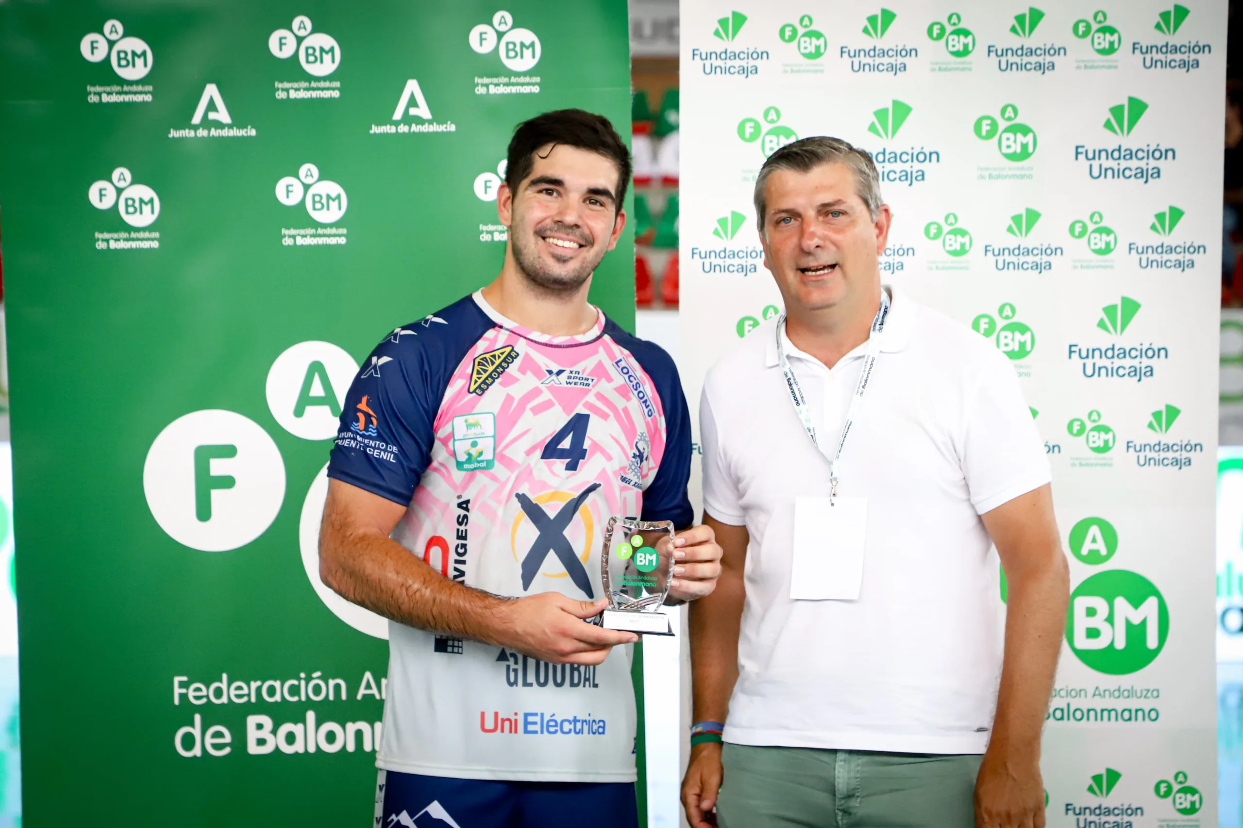 El jugador de Ángel Ximénez Pablo Simonet fue elegido MVP de la Final de la XXIX Copa de Andalucía de Balonmano 2024. El central argentino fue el máximo anotador del encuentro con nueve goles en su contador personal.