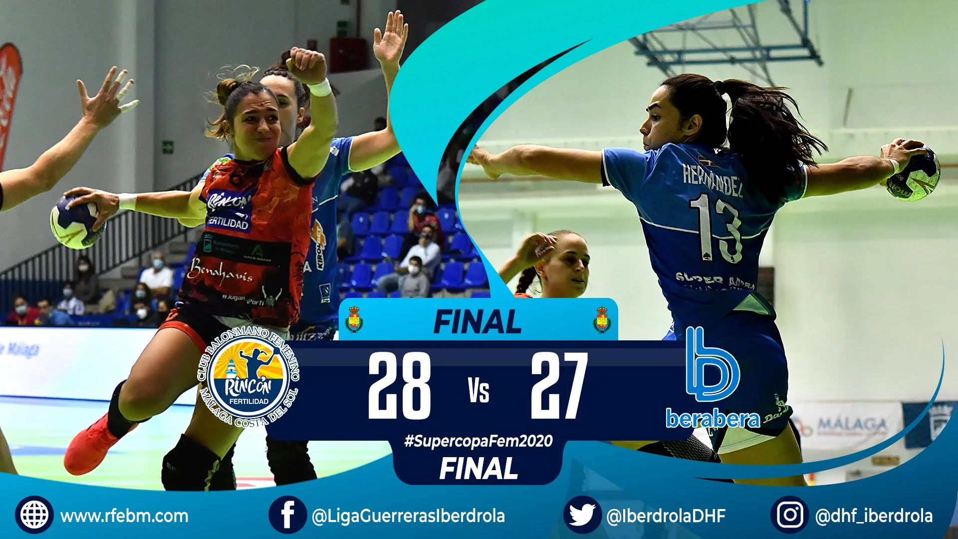 El Rincón Fertilidad Málaga se ha proclamado campeón de la Supercopa de España de balonmano femenino tras vencer por 28-27 al BM Bera Bera de San Sebastián. El equipo malagueño suma así su segundo título en menos de dos meses, después de la conquista de la Copa de la Reina el pasado mes de septiembre.