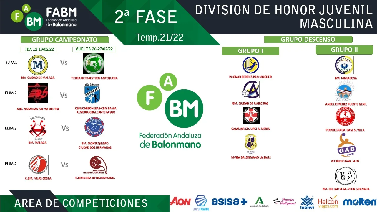En la mañana de hoy se ha celebrado en los locales de la Federación Andaluza de Balonmano, el sorteo correspondiente a la segunda fase de la competición de División de Honor Juvenil Masculina.