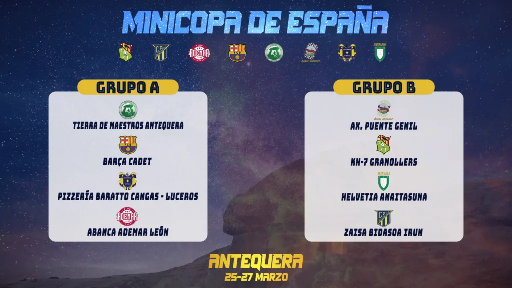 - Grupo A | Tierra de Maestros Antequera, Barça Cadet, Pizzería Baratto Cangas – Luceros y Abanca Ademar León
