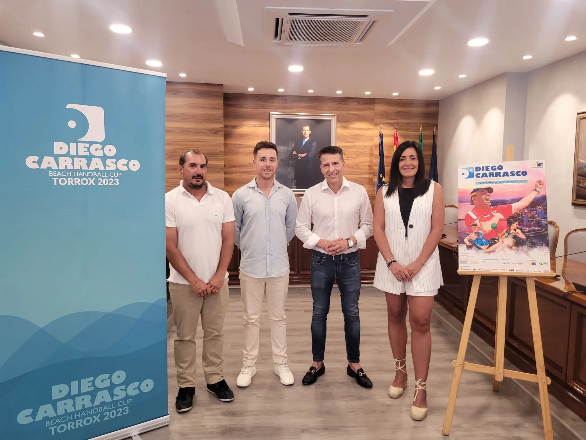 El alcalde de Torrox, Óscar Medina, y el concejal de Deportes, José Manuel Fernández, presentaron esta copa. En colaboración con el Club Balonmano Málaga Costa del Sol y Deporte y Empresa, teniendo a Pepa Moreno y Óscar Miras, en representación respectivamente. El torneo rinde homenaje a Diego Carrasco, fallecido en 2019 a los 49 años, destacado seleccionador de balonmano playa.