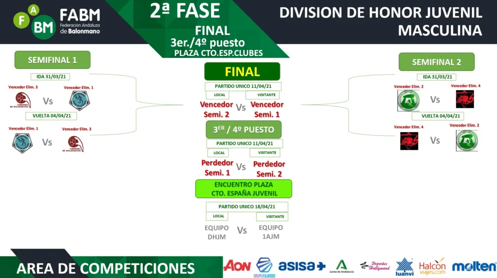 Finalizados los cuartos de final de esta competición, quedan configuradas las semifinales de la División de Honor Juvenil Masculina, de la siguiente manera:
